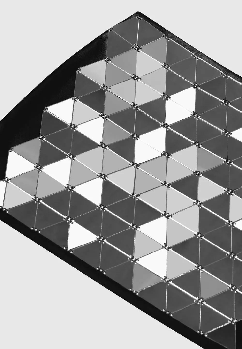 This Mini Skirt Is Crafted From Luxurious Vegan Leather And Beautifully Embellished With Unique Mirrored Accents, Ensuring You Stand Out In Any Crowd. Add A Statement To Any Outfit With This Chic, Stylish Piece.