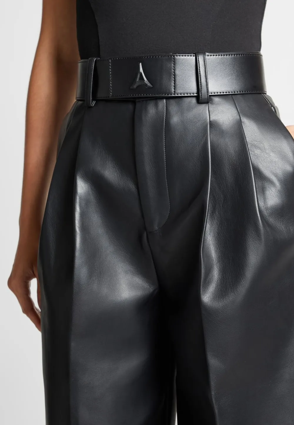 Our Vegan Leather Pleated Trousers With Eiffel Belt Are Designed For A Flattering Fit And Stylish Look. The Classic Pleated Design Make These Trousers Perfect For Day Or Night. An Excellent Choice For The Confident And Fashionable.