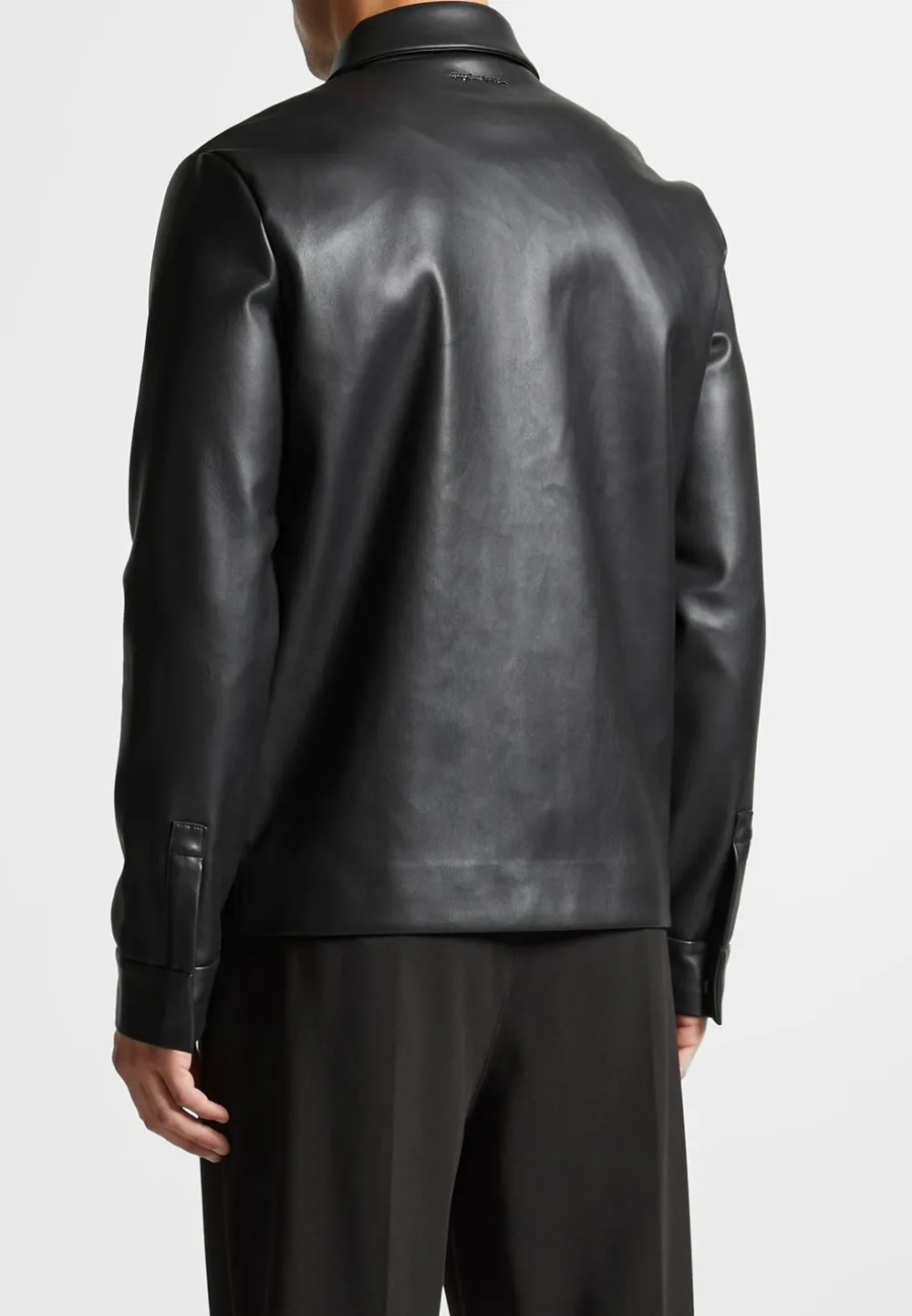 This Vegan Leather Shirt Jacket Is The Perfect Blend Of Style And Practicality. Its Heavy-Weight Construction Provides A Long-Lasting And Durable Wear. It Is Perfect For Cooler Weather And Pairs Perfectly With Our Belted Trousers.