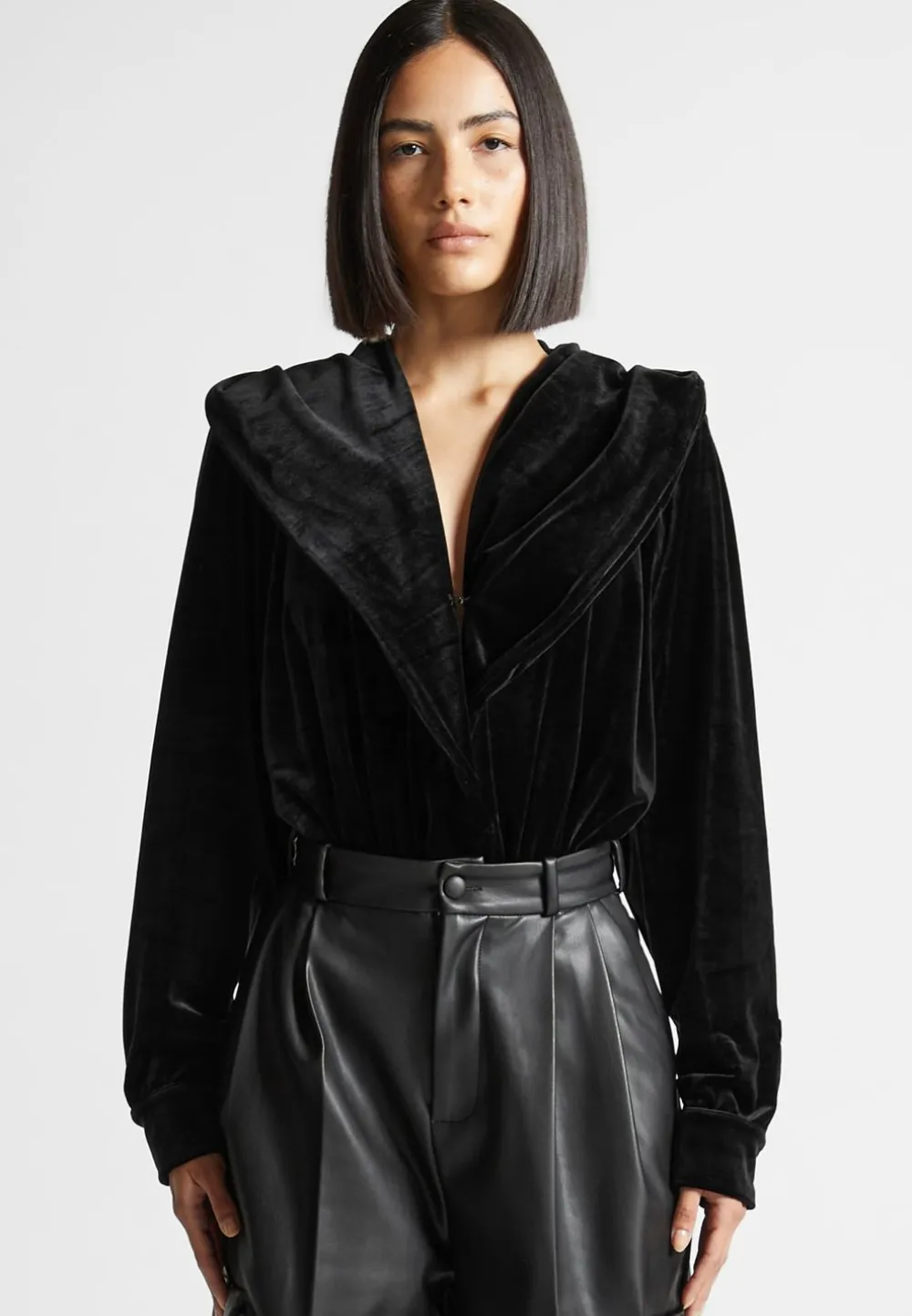 Made From A Luxurious Velour Fabric, This Hooded Bodysuit Is Sure To Become A Wardrobe Staple. Its Soft-Touch Construction Ensures All-Day Comfort, Perfect For Transitioning From Day To Night.