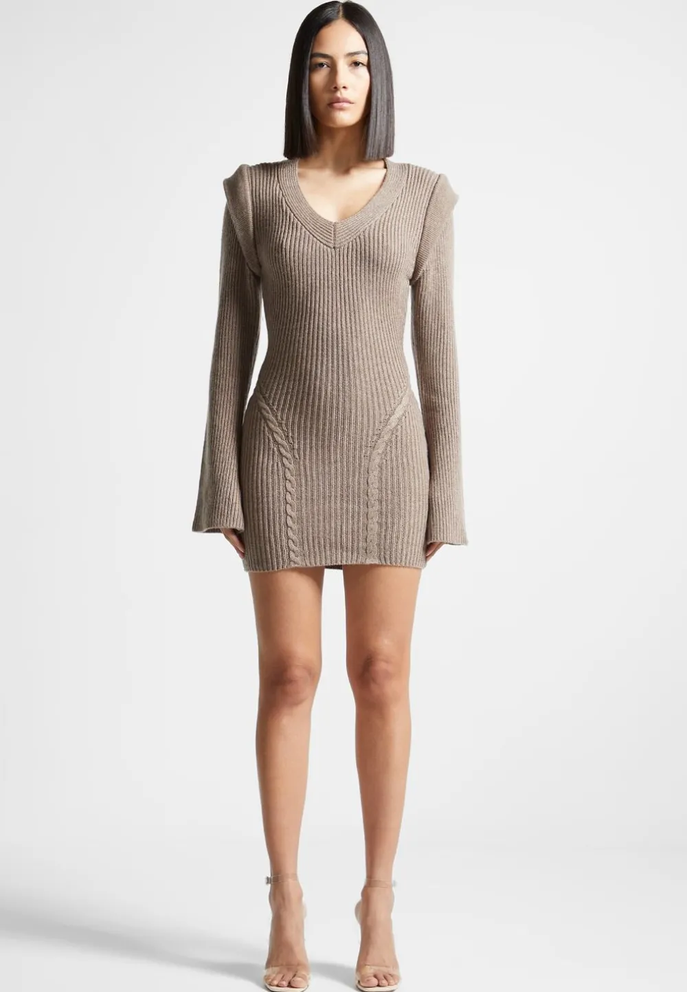 This Wide Shoulder Knitted Contour Mini Dress Is Your Perfect Day To Night Outfit. It Is Designed With Premium Knit Material That Follows The Natural Contours Of Your Body For A More Flattering Fit. Look Stunning With Ease!